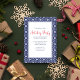 Ce design comprend une fête de Noël Flamme de neige simple, rustique ferme bleu marine, minimaliste neige de neige, bleu et blanc motif motif, un Noël vacances se réunir, police de script de calligraphie moderne, un style de texte de typographie design tendance, pays élégant simpliste fête de Noël invitations, simples invitations de vacances propres de base