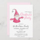 Créez des invitations personnalisées uniques à la fête de Noël avec un joli gnome en vêtements roses illustration sur un arrière - plan blanc. Le modèle permet de customiser facilement avec le nom de famille, la date et l'heure, l'adresse, le RSVP et le code vestimentaire de la fête. L'arrière est rose pastel.
