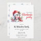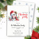Créez d'élégantes invitations à la fête de Noël avec un mignon manchot dans un chapeau de Père Noël rouge et une écharpe avec un minuscule bonhomme de neige entouré de verdure et d'ornements festifs. L'arrière est décorée de flocons bleus sur un arrière - plan blanc. Le modèle vous permet de customiser facilement le texte avec votre nom de famille, date et heure, adresse, RSVP et code vestimentaire de fête. Si vous souhaitez en customiser davantage, vous pouvez le faire à l'aide de l'outil de design Zazzle.