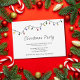 Invitation de fête rétro, avec lumières de Noël et typographie de script design et lettrage noir personnalisable. Un invitation coloré et festif pour votre fête de vacances ou de fête.