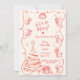 Ce style branché dessiné à la main et illustré l'invitation à la fête de Noël comporte une bordure ondulée scintillante et des mains griffées tenant des boissons. Le design fantaisiste et décalé comprend des caractères manuscrits et des doodles de célébration. Couleur rouge et beige pour une invitation à la fête moderne et tendance.