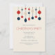 Jolie rétro Joyeux Noël invitation avec des ornements de style 70 vintages en rouge, bleu et ivoire au-dessus de votre nom de famille. Beau invitation de gala de vacances nostalgique.