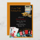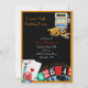 Invitation de soirée casino colorée faite en noir avec une bordure orange et des graphiques d'une roulette roue, machine à sous et jetons et cartes de poker. L'invitation parfaite pour un anniversaire de casino ou une soirée anniversaire. Personnalisez le texte en fonction de vos besoins.