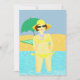 Une fille en bikini pois jaune sirotant un verre pendant les vacances à la plage