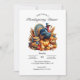 Célébrez la saison de la gratitude en style avec cette carte d'invitation Thanksgiving magnifiquement conçue. Doté d'un majestueux centre de dinde entouré d'une abondante récolte de citrouilles, de maïs et d'autres délices automnaux, cette carte donne le ton parfait pour votre rassemblement festif. Tous les détails de l'invitation, y compris la date, l'heure et l'adresse, peuvent être entièrement personnalisés pour convenir à votre événement. Le dos de la carte apporte une touche chaleureuse avec une photo cosy d'une table Thanksgiving traditionnelle, ornée d'une dinde qui fait saliver, de légumes frais et de délicieux tartes. Pour une touche plus personnelle, vous pouvez remplacer l'image arrière par votre propre photo, ce qui fait de cette invitation uniquement la vôtre. Que vous organisiez un dîner en famille ou une grande fête, cette carte vous impressionnera et ravira vos invités.