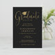 Cette invitation élégante pour une fête de remise de diplôme avec écriture en noir et or peut être personnalisée avec les détails de votre célébration et une photo au verso. Conçue par Thisisnotme©