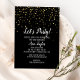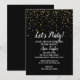 Cette invitation de fête de remise de diplômes confettis sur fond noir est parfaite pour une célébration de fin d'études élégante, que ce soit pour le lycée, l'université, l'école d'infirmières ou les études supérieures. Le design présente de faux confettis dorés élégants sur un fond noir avec une calligraphie blanche simple.