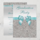 Invitations de fête de remise des diplômes. La coutume élégante a personnalisé les invitations argentées et de sarcelle d'hiver de couleurs de fête de remise des diplômes pour des filles/femmes avec de beaux bijoux scintillants de paillettes d'une image imprimée d'argent, motif de gemmes, sarcelle d'hiver brillante mignonne, le bleu de turquoise a imprimé des arcs et des images de rubans et des diamants assez numériques bling des bijoux sur un arrière - plan argenté chic de gradient avec le texte turquoise de couleur. Notez svp : Tous les invitations sur Zazzle ont des images imprimées d'appartement. Ces invitations chics, fascinants, de tape-à-l'oeil et de charme pour votre université, université, diplômés d'élèves de terminale sont décorés/imprimés des deux côtés. Belles, chics, à la mode, modernes invitations pour des diplômés de fille. La classe du texte 2014, 2015, 2016, 2017, 2018, 2019, 2020, 2021, 2022, 2023, 2024 etc., de la police et de la couleur de la police peut tout être customisée. Si vous avez besoin d'aide customisant votre produit svp contactez-moi par mon magasin. Je serai heureux d'aider.