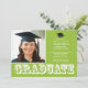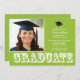 Commencez votre événement outre de la droite avec notre invitation licenciée moderne de fête de remise des diplômes de photo de vert de chaux. Caractéristiques de conception le mot "diplômé" dans l'ensemble de blanc sur un arrière - plan de vert de chaux avec un casquette de diplômé avec le gland. Invitation parfaite d'obtention du diplôme pour un obtention d'un diplôme d'études secondaires ou une obtention du diplôme d'université. Complétez juste votre information, ajoutent votre photo et vous êtes tous placez pour aller. Visitez notre magasin pour un grand assortiment des invitations à la mode et élégantes d'obtention du diplôme dans un grand assortiment de couleurs d'école !