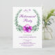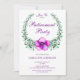 Célébrez votre retraite avec style avec cette magnifique invitation à la retraite florale aquarelle, avec un élégant design de couronne fleurie dans le rose violet, avec des feuilles verts. Parfait pour les amateurs de fleurs !