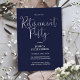 Cette invitation de fête de retraite avec écriture élégante bleu marine peut être personnalisée avec toutes les informations de votre célébration spéciale. Conçue par Thisisnotme©