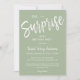 Créez une invitation de fête surprise personnalisée. Cette invitation de fête comprend une écriture calligraphique spacieuse et magnifique avec un fond vert poussiéreux. Vous pouvez facilement la personnaliser avec votre propre texte et la modifier à votre goût. Veuillez noter : "Chut..." et "Surprise" ne peuvent pas être modifiés.