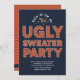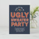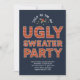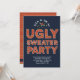 Famille Invitation et amis à une fête de pull U-G-L-Y avec cette invitation festive de PiPo Press. Cet invitation présente des lettres faites d'un motif tricoté rouge avec une pointe de faux-pied sur un arrière - plan de la marine.
