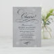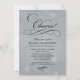 Le design sophistiqué et élégant de l'invitation cocktail de fête d'entreprise présente des bulles rondes festives, "Cheers!" dans un script décoratif, et une formulation qui peut être personnalisée pour votre événement spécial. Platine gris et argent avec des couleurs noir.