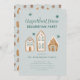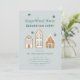 Invitation de Noël rustique et moderne avec illustration dessinée à la main de maisons en pain d'épices avec des glaçures vertes. Idéal pour une soirée en pain d'épices.