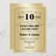 Invitation à la fête du 10ème anniversaire de mariage. Carte d'invitation dorée et noire. Parfait pour une célébration élégante. Peut être personnalisé pour n'importe quelle année.