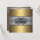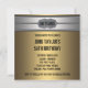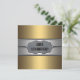 Invitation à la fête des 50 ans de l'homme avec une étiquette noire, dorée et argentée chromée rivetée