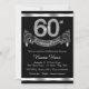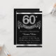 Invitation élégante pour une fête des 60 ans avec des chiffres en diamant et une bannière sur fond argent et noir. Cette belle invitation pour les 60 ans est facilement personnalisable pour votre événement. Vous pouvez changer la couleur de fond. Ce design saisissant convient aussi bien pour un homme que pour une femme. Il s'agit d'un design imprimé sans vrais diamants, argent, paillettes, etc.