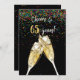Toast au champagne sur fond noir avec des confettis qui tombent pour l'invitation à la fête des 65 ans de mariage.