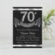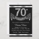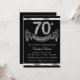 Invitation élégante noire et argentée pour une fête des 70 ans avec des chiffres en diamant et une bannière sur fond argent et noir. Cette belle invitation pour une fête des 70 ans noire et argentée est facilement personnalisable pour votre événement. Ce design saisissant convient aussi bien pour un homme que pour une femme. Il s'agit d'un design imprimé sans vrais diamants, argent, paillettes, etc.