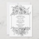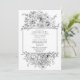 Cette invitation commémorative funéraire présente des fleurs de ligne noire dans une illustration classique en noir et blanc. Fleurs noires et blanches peintes à la main. Éditez facilement avec vos propres détails. Voir d'autres éléments dans la collection. (lignes noires autour des mots, en l'honneur de)