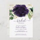 Aquarelle Bouquet nuptiale Invitations de douche nuptiale (Plum foncé / pourpre) : Ces invitations de douche nuptiale botanique sont parfaites toute douche nuptiale couleur! Avec de grandes fleurs violettes et blanches profondes et de la verdure d'eucalyptus, la mariée et vos invités adoreront ! Le fond est orné d'une grange rustique. Modifiez votre texte pour en faire votre propre texte. Vous pouvez également modifier la couleur de votre texte et la couleur de votre arrière - plan !
