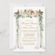Elégante canopée de mariage Aquarelle rose Blush Floral Douche nuptiale Invitation Card comprend de belles roses roses roses roses et roses blanches. L'arche à baldaquin en bois mariage comprend une végétation botanique. Script Gold.