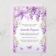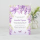 Un élégant arrière - plan à dégradé blanc et violet, décoré de fleurs de glycine couleur lavande, papillons et un arc. Personnalisez et ajoutez un nom et des détails du parti. Retour : couleur lavande