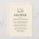 Invités Invitations pour célébrer la future mariée avec cette simple et élégante invitation à la douche nuptiale blanche. Dotée d'une charmante décoration rustique aux accents naturels subtils, cette invitation est parfaite pour une douche décontractée mais sophistiquée. Personnalisez-le avec les détails de votre événement pour créer un souvenir chaleureux et intemporel pour l'occasion spéciale.