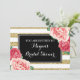 Invitations de douche nuptiale personnalisées en noir et blanc avec rayures dorées et fleurs d'aquarelle rose, s'il vous plaît noter l'or est effet photographique seulement.