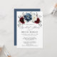 Ardoise, Bourgogne, ivoire blanc sur le thème de la nuptiale fleurie Invitation avec élégant bouquet de bordeaux, ardoise, bleu poussiéreux, roses d'ivoire et fleurs de pivoine et feuilles d'eucalyptus vert poussiéreux. Veuillez me contacter pour toute aide sur la personnalisation ou si vous avez besoin d'un autre produit