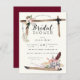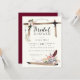 L'arc de Boho avec plumes, cristaux, flèches et fleurs encadrent une délicieuse invitation à la douche nuptiale. Articulé avec un rouge bordeaux vif et un emblème flèches. Parfait pour toute saison. Vos invités anticiperont un événement amusant et unique. Un peu fantaisiste, un peu occidental et un peu rustique.