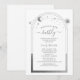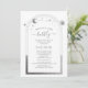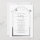 Mystical White Silver Sun Moon Stars Astronomy Space Celestial Brunch and Bubbly Bridal Shower Invitations présente un soleil argenté, une lune et des étoiles encadrés sur un arrière - plan blanc. À l'intérieur, vous trouverez vos informations d'invitation de douche nuptiale personnalisées. Personnalisez en modifiant le texte dans les zones de texte. Conçu pour vous par ©2022 Evco Studio www.zazzle.com/store/evcostudio