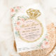 Personnalisez cette invitation à la douche nuptiale enchanteresse facilement et rapidement, appuyez simplement sur le bouton customiser pour réorganiser et formater le style et le placement du texte. Cette élégante invitation présente une bague en diamant de parties scintillant d'or ornée de belles fleurs roses vertes d'aquarelle. Objets correspondants disponibles en magasin ! c) Le Happy Cat Studio.