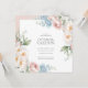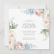 Elégante invitation à la douche nuptiale à thème botanique avec une décoration de fleurs bleu et rose doux et feuillage vert élégant aux coins. Les détails de votre fête nuptiale et le nom de votre invité d'honneur sont élégamment affichés dans une police serif chic