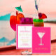 Un arrière - plan de couleur moderne rose et or clair avec un cocktail. L'information est facilement changée en votre propre invitation de douche nuptiale personnalisée. Moderne et simple.
