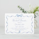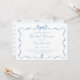 Préparez la scène pour une célébration moderne et élégante avec cette invitation à la douche nuptiale Dusty Blue Watercolor, avec un cadre ondulé branché, un arc délicat et d'élégants détails de gigogne. Le design d'aquarelle bleu roux apporte une touche romantique, ce qui en fait l'invitation parfaite "Quelque chose de bleu" pour une douche nuptiale chic et raffinée. Si vous avez besoin d'aide pour customiser votre invitation, faites-le-moi savoir : j'aimerais vous aider !