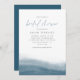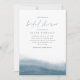 L'élégante invitation à la douche de nuptiale côtière présente un dégradé d'eau bleu lagon le long du fond avec une courbe gracieuse qui évoque le reflet et le flux de la mer. Vos détails de douche nuptiale apparaissent en lettrage classique minimaliste avec accents manuscrits.