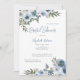 Une belle invitation à la douche nuptiale avec des fleurs florales bleues et blanches poussiéreuses faites en aquarelle.
