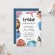 Invitation à la douche nuptiale, encadrée de coquillages d'aquarelle et de créatures océaniques. La "douche nuptiale" est indiquée à la main et le texte restant est entièrement modifiable.