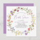 Une élégante invitation à la douche nuptiale avec "Fête des mariées" présentée dans un script chic lavande violet, et une couronne d'aquarelles violet, rose, pêche et jaune fleur sauvage d'inspiration boho. Personnalisez le nom de la mariée et les détails de la douche en lavande simple et en lettres grises.