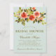 Design élégant et simple d'invitation à la douche nuptiale avec roses d'aquarelle rouge et feuillage vert sur un arrière - plan menthe. Le côté inverse de l'invitation est également vert menthe.