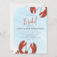 Ce design comprend une simple invitation à la douche de la mariée de homard rouge aquarelle, avec un code QR pour le site web en ligne page d'événement de médias sociaux lien URL, avec une soirée de cuisson à ébullition de homard nautique, une mer côtière en bord de mer, idéal pour dîner de fruits de mer invitation, un texte de police de typographie branché, une typographie de script moderne de calligraphie, avec un Maryland New England Maine côte de côte du Maine, cuit à la vapeur, un élégant et amusant océan d'eau, avec un animal bleu marine crustacé, avec eau bleue, océan, invitation nautique de mer