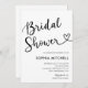 L'invitation minimaliste de la douche nuptiale comprend une calligraphie de script moderne avec un coeur.
