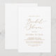 Cette délicate invitation à la douche nuptiale en calligraphie or est parfaite pour un wedding shower moderne. Le design minimaliste romantique présente une belle et élégante typographie de champagne jaune doré sur un arrière - plan blanc au look épuré et simple.