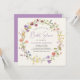 Une élégante invitation à la douche nuptiale crème légère avec "Fête des mariées" présentée dans un script chic violet, et une couronne d'aquarelles fleurs sauvages violet, rose, pêche et jaune. Personnalisez le nom et les détails de la douche de la mariée en lettres simples violettes et grises.