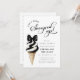 Célébrez la future mariée avec cette invitation à la douche nuptiale chic "She’s Been Scooped Up!" avec un cône de crème glacée moderne noir et blanc surmonté d’un élégant ruban noir. L'aquarelle se marie à une typographie décontractée et élégante pour un look frais et sophistiqué, parfait pour une fête de la mariée d'été ou un brunch et un événement bubbly amusant. Le détail du cône gaufre et la palette minimaliste apportent une touche tendance aux mariées modernes à la recherche d'un thème unique et ludique.