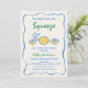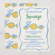Whimsical Coloured Main Squeeze Bridal Shower Invitation Bleu, vert et jaune chaussure a trouvé sa principale invitation de douches de brides de presser avec quelques citrons, cadre décalé bordure et texte écrit à la main. Cette invitation à la douche nuptiale à thème citron est idéale pour une personne à la recherche d'un design original et moderne.