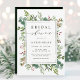 Cette invitation à la douche nuptiale comprend des eucalyptus peints à l'aquarelle, des feuilles verts, des baies rouges, des branches de pin et un cadre rectangle vert avec une calligraphie élégante. Pour une personnalisation plus avancée de cette conception, cliquez sur le lien "Customiser plus loin". Des articles correspondants sont également disponibles.