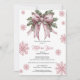 Célébrez la future mariée avec cette invitation romantique et féminine à la douche nuptiale de Noël, avec des tons roses doux avec des accents de vacances délicats. Parfait pour un thème de vacances unique et fantaisiste, cette invitation mélange les éléments de Noël traditionnels avec une palette de couleurs romantiques, créant une atmosphère chaleureuse et accueillante. Les tons roses apportent une touche de douceur à la décoration festive, ce qui en fait l'endroit idéal pour une douche nuptiale, à la fois saisonnière et personnelle. Customisez avec les détails de votre événement pour créer une invitation élégante qui reflète magnifiquement la joie et l'amour de la saison.